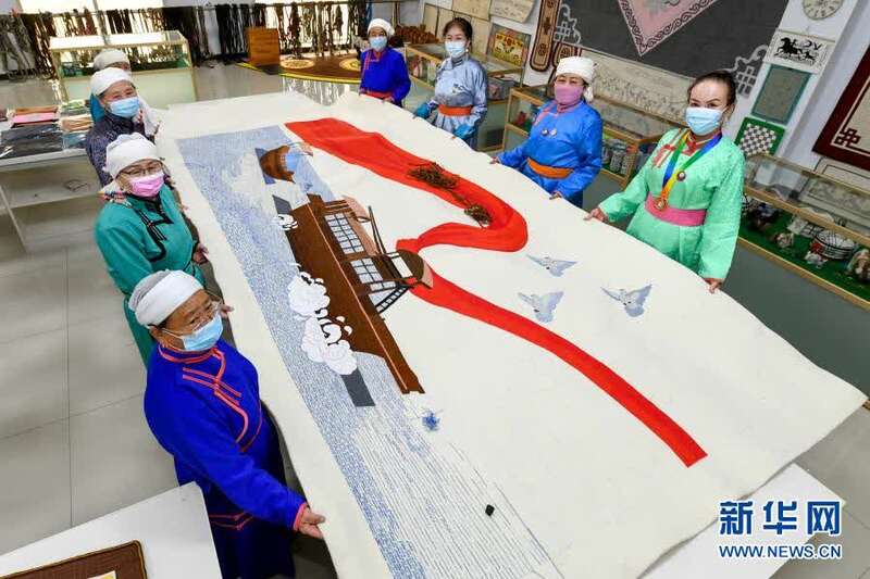 蒙古族刺绣是国家级非物质文化遗产。为迎接中国共产党建党100周年,自2021年元旦起,内蒙古锡林郭勒盟苏尼特左旗的8名蒙古族绣娘开始制作一幅长5米、宽2米的刺绣作品《一叶红船映初心》,该作品以“南湖红船”为主题,计划于3月31日完成。