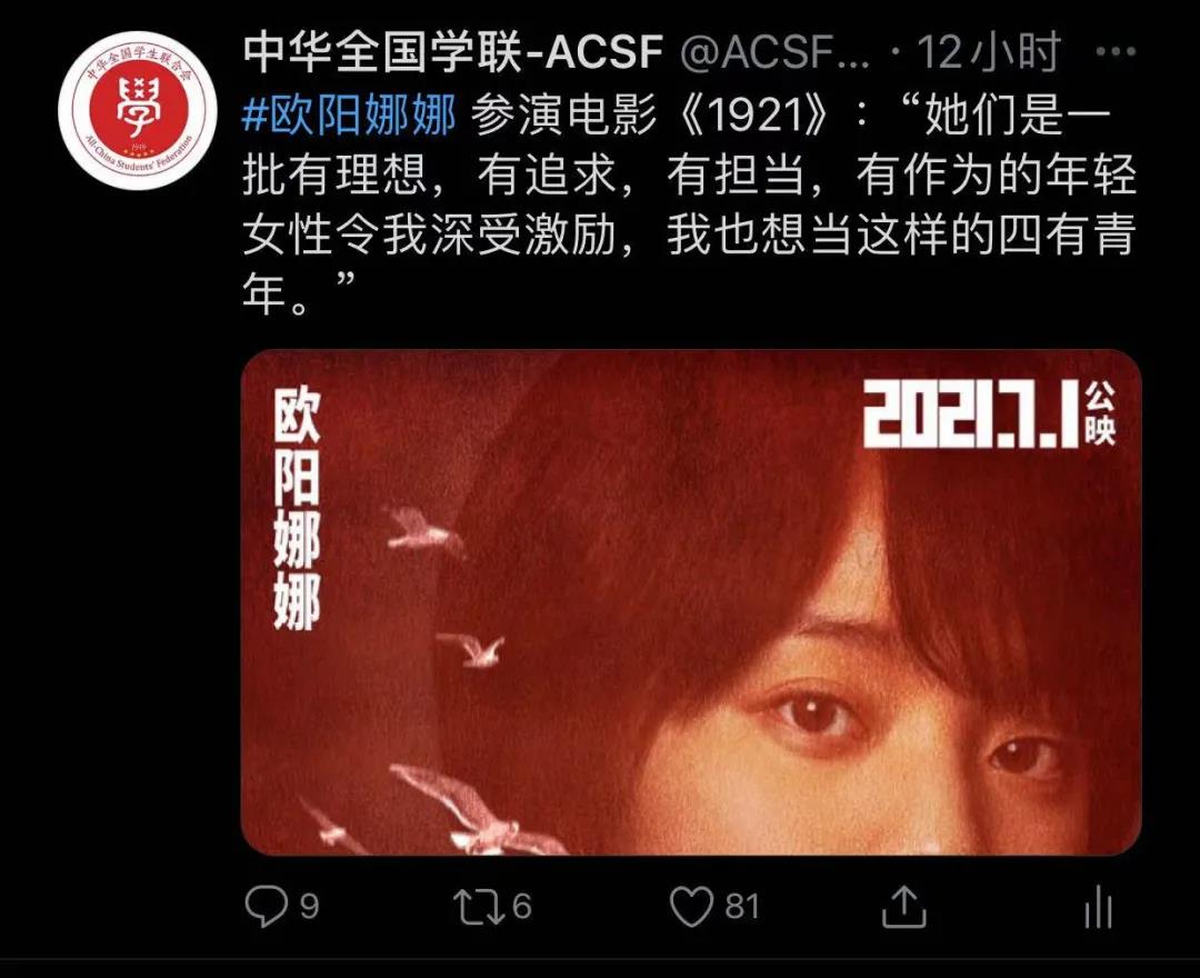 3月8日上午,欧阳娜娜发布了一张电影《1921》学生造型的剧照,引起了台湾媒体的关注。
