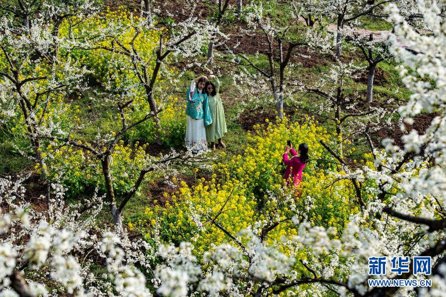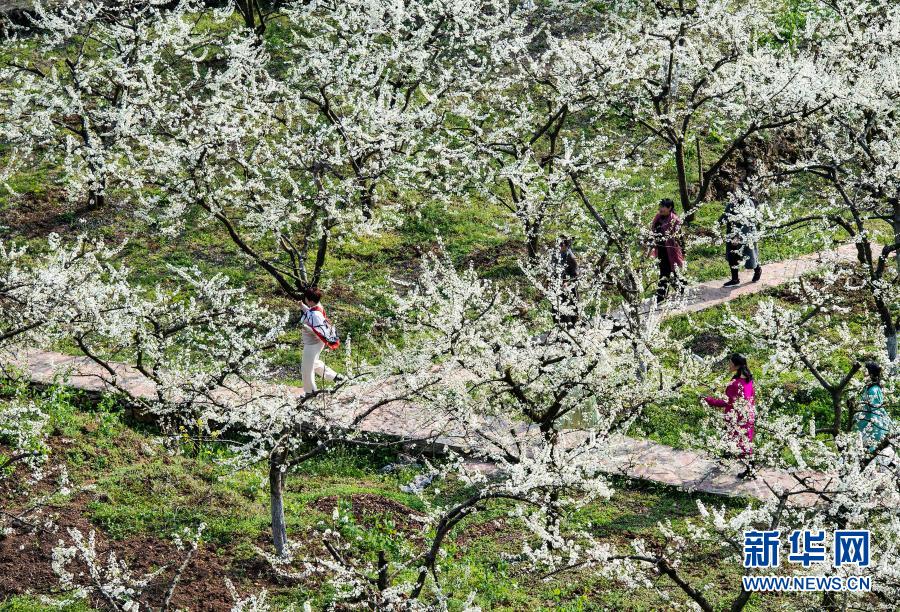 3月13日,游客在秭归县沙镇溪镇高潮村踏青赏花。新华社发(梅雪飞 摄)