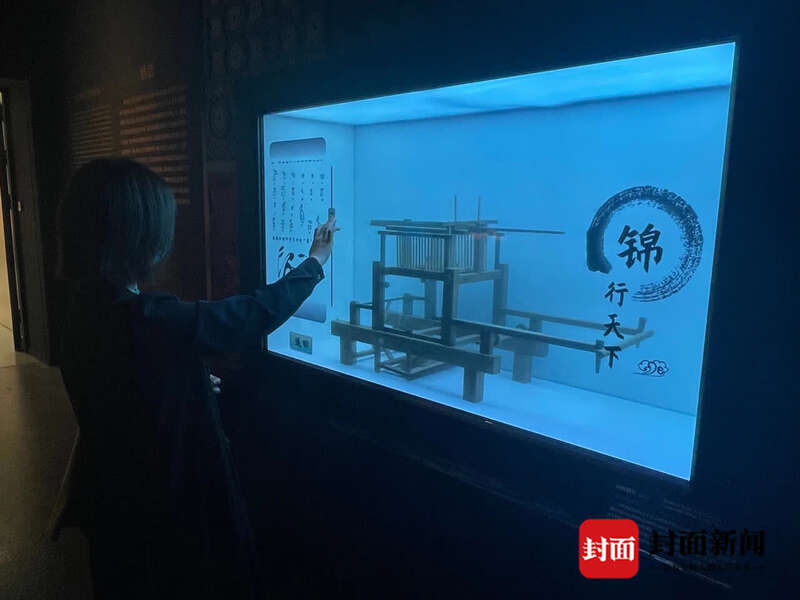 展厅里有一块上知蜀锦历史、下晓文物知识的“大玻璃”,你有没有动动小手尝试呢?这件“成博君2号”看似一块普通的透明的玻璃屏,实际上使用了透明导电技术。展柜里装着汉代织机模型,展柜的正面安装了一块透明玻璃屏,既不会遮挡文物,又能够讲解桑蚕兴盛的历史、蜀锦织机的技术,动手触摸起来十分酷炫。