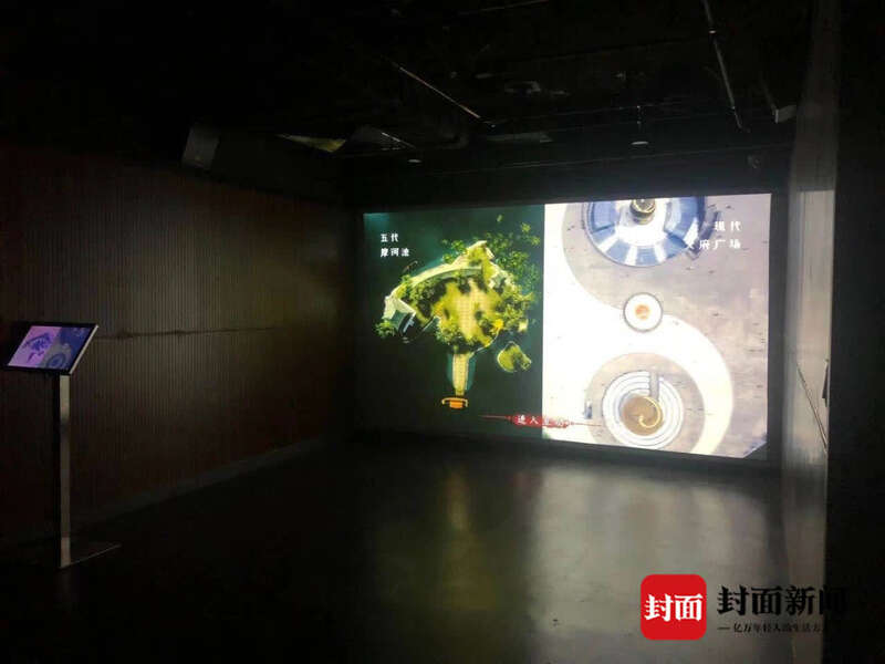 工作人员根据文献、考古发掘出土的一些文物,重现了摩诃池当年的景象。工作人员为正在参观的观众演示,如果选择五代时期的崇光殿,首先映入眼帘的是文献中关于崇光殿的介绍,接下来会有个类似诗词大会的互动环节,选择回答与之相关的古诗词填词,最后则可以窥探摩诃池的全貌。