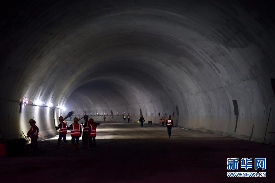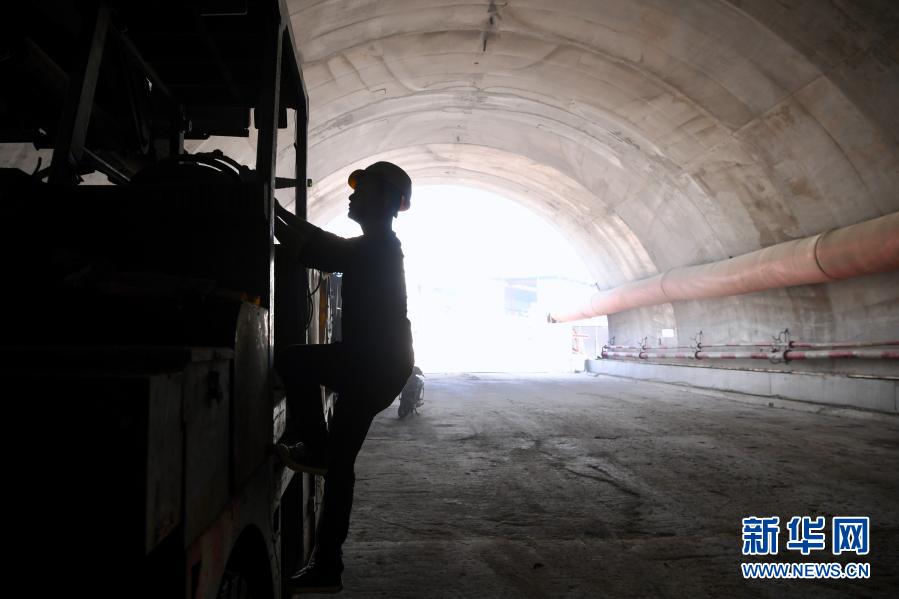 3月16日,施工人员在福州市工业北路文林山隧道内行走。