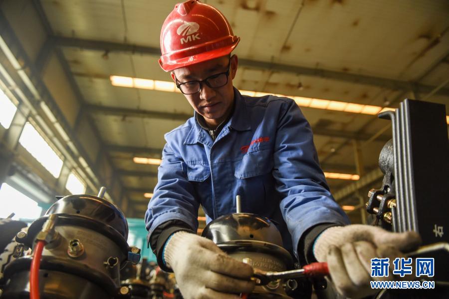 3月17日,在鄂尔多斯装备制造工业园区内,一家特种车辆制造有限责任公司的工人调试设备。新华社记者 彭源 摄