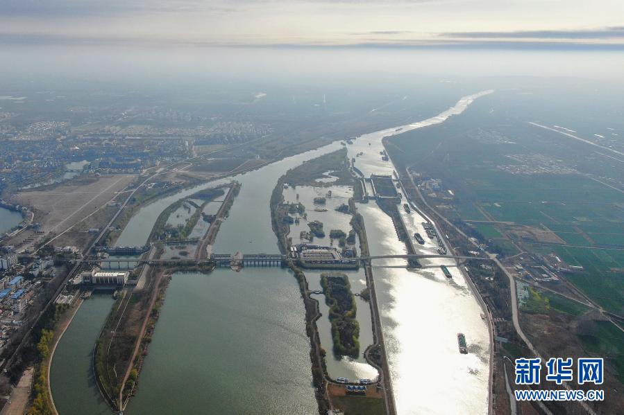 这是南水北调东线台儿庄泵站(3月18日摄,无人机照片)。新华社记者 刘诗平 摄