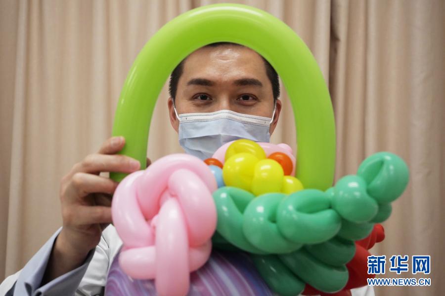 在香港东区医院,“气球大夫”陈诺文医生接受新华社记者专访(3月16日摄)。