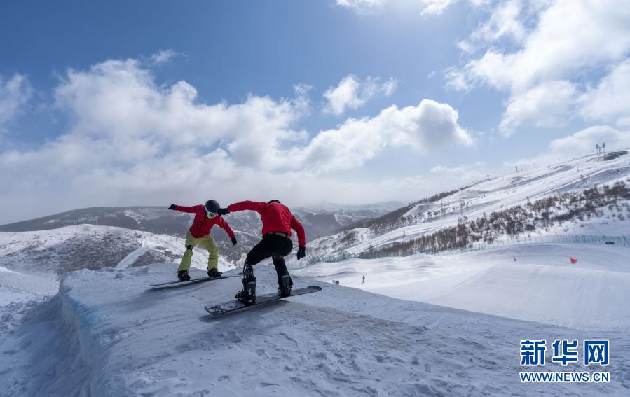 3月20日,冬残奥会国家集训队单板滑雪运动员刘伊扬(左)和武中伟在冬残奥会训练基地训练。新华社记者 才扬 摄