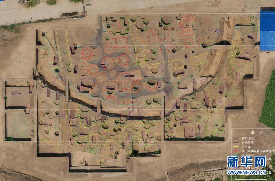 这是2019年8月27日在河南省巩义市河洛镇拍摄的双槐树遗址(无人机照片)。新华社记者 李安 摄