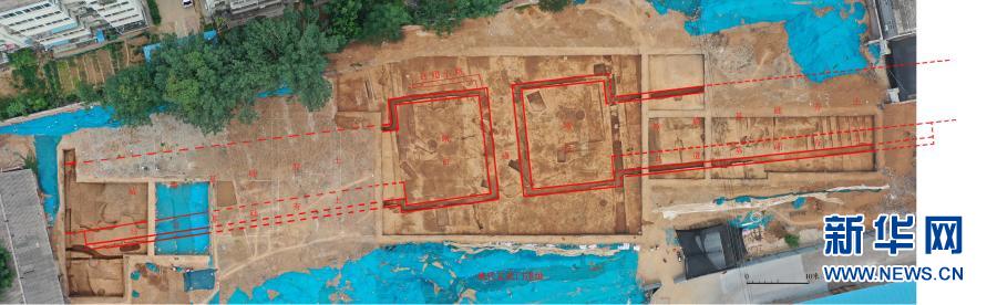 这是隋唐洛阳宫城玄武门遗址分布位置图(无人机照片)。