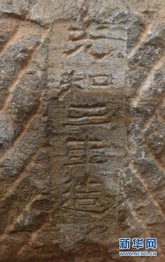 这是河南洛阳白草坡东汉陵园发掘现场出土器物上的“光和三年造”题记(2020年12月9日摄)。