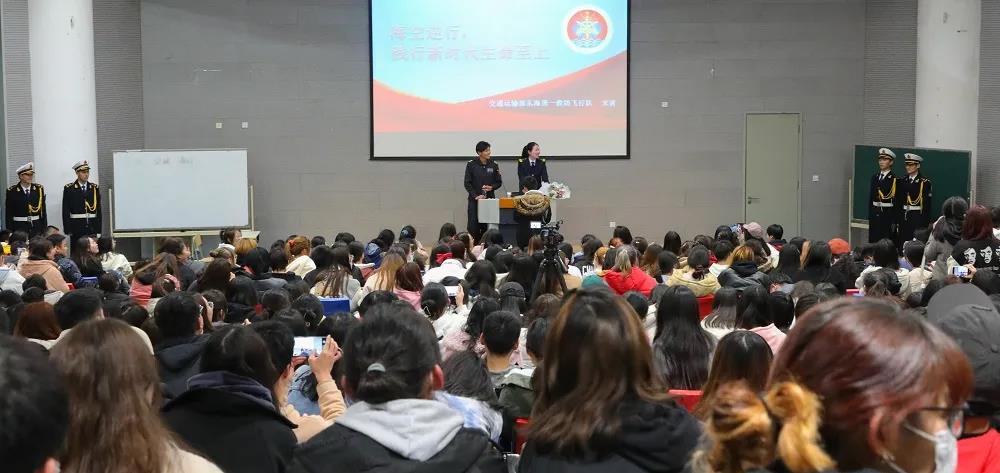 “我看过最美的风景,是在救援之后阳光穿破乌云点亮广阔的海面,仿佛那是冲破一切艰难险阻的坚韧力量。”课上,宋寅结合自身经历与大家分享了“十大救助案例、救助飞行的日常、长跑爱好”三大板块,将“高大上”的理论知识,十分“接地气”地与生活相结合,课堂上时不时响起掌声。谈及“‘ZOORIK’轮救助”等救援事例时,宋寅肃穆庄重,她坚定地告诉大家:“搜救不是愚勇,是一番决策后的行动,出任务时,已知是少部分,未知才是工作的大部分。所以在任何时候,永远有东西可以学。对大家而言,学习也永远不能停止。”面对同学求知的眼光,她坦言:“其实我们这行并没有大家所想象的那么浪漫,它危险,也很有挑战。”