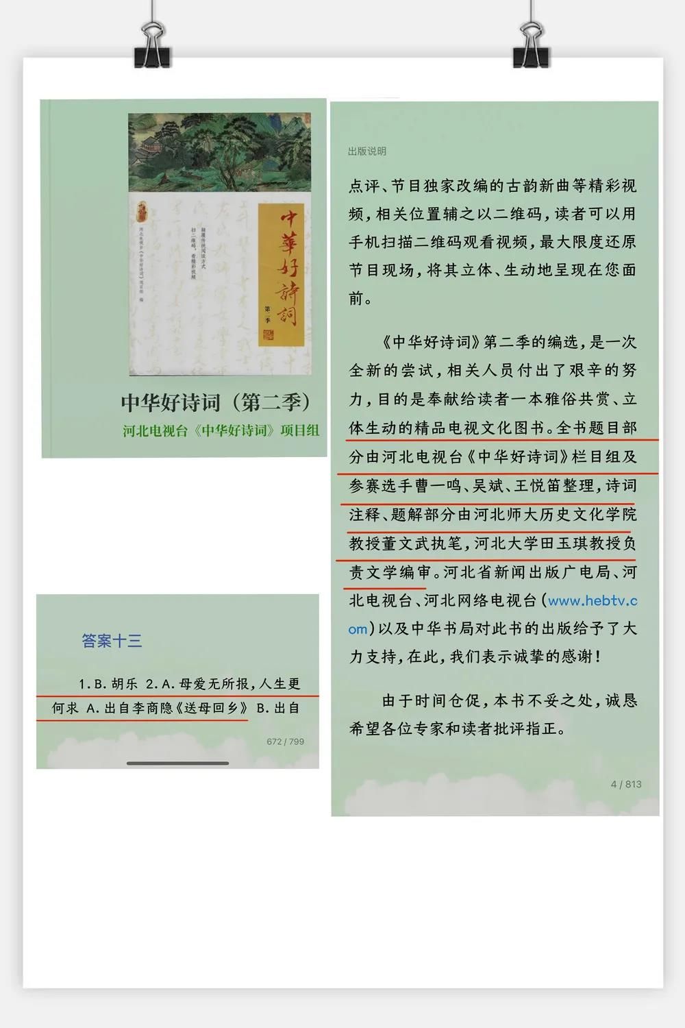 截图中,广东电视台主持人孙愈拿着一本《少年说诗词》在讲解署名作者为李商隐的“古诗”《送母回乡》,还被冠以“小学语文必背古诗”的亮点介绍。