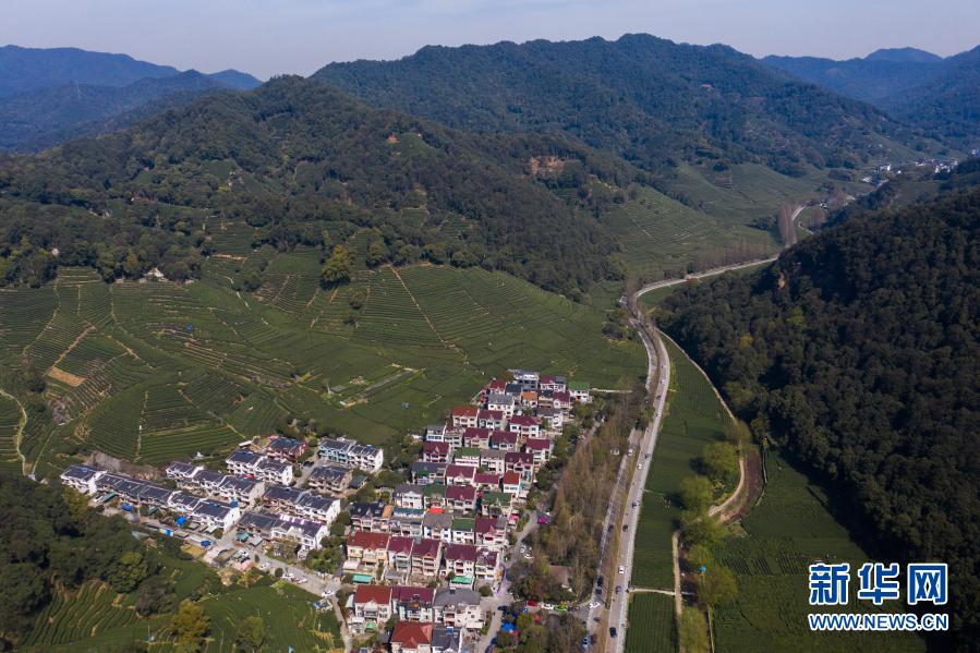 3月23日拍摄的杭州梅家坞村的茶园(无人机照片)。新华社记者 徐昱 摄