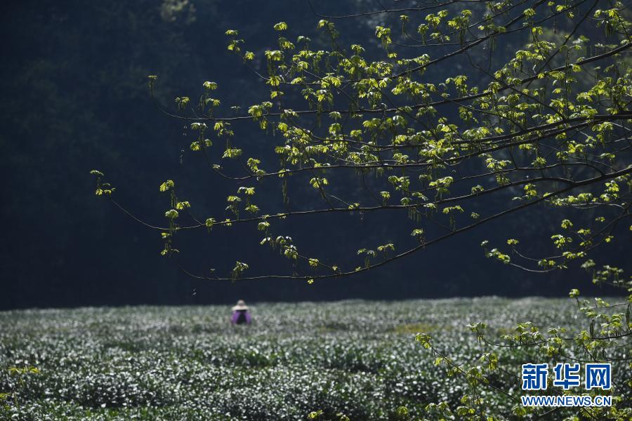 3月23日,杭州梅家坞村的茶农在采摘西湖龙井“明前茶”。新华社记者 徐昱 摄