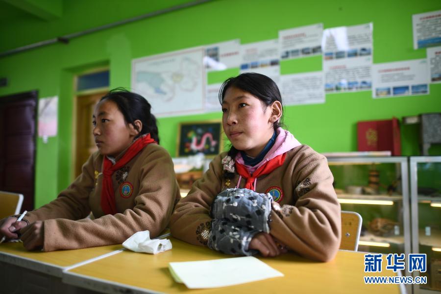 3月23日,吉尕小学学生达叶(右)在生态课堂上。