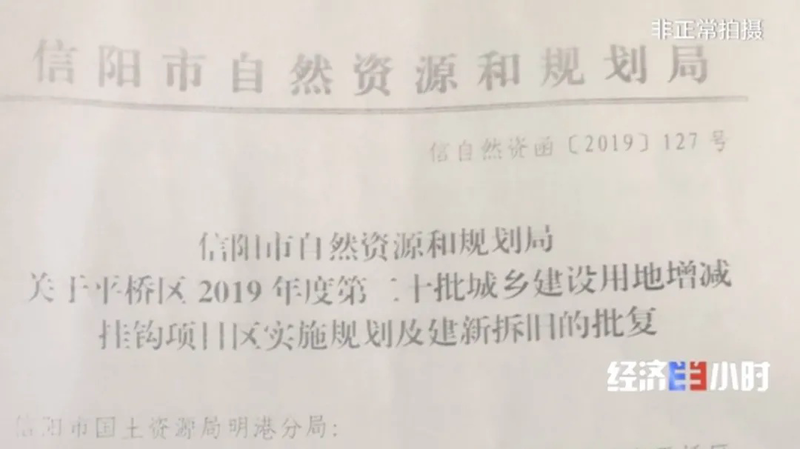 尽管土地管理部门说得言之凿凿,但记者依旧在信阳市自然资源和规划局的这份批复文件上看到:建新区要严格执行供地政策,严禁违规安排国家限制、禁止用地项目及淘汰类项目,增减挂钩项目批准后要严格按照国家相关法律法规规定办理征地、供地等用地审批手续,然后方可用地。