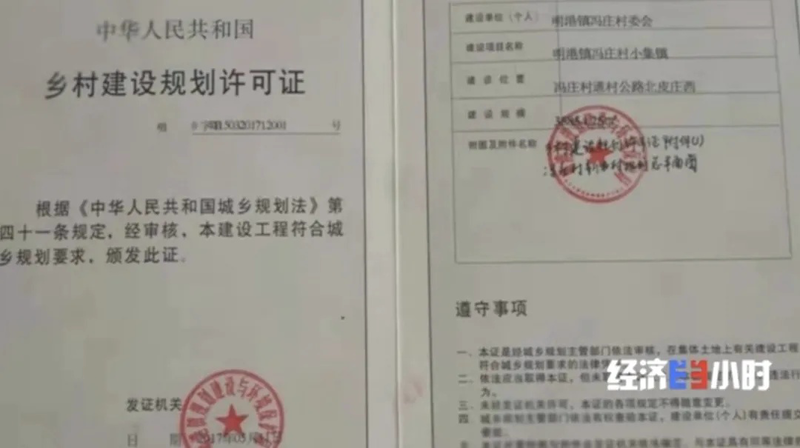 这位销售人员透露,这里的房子之所以便宜,关键是土地成本低。当时是按照新农村建设的名目,村里拿出了这块原本是基本农田的土地用来进行房屋建设,后续还办理了乡村建设规划许可证和土地使用证。