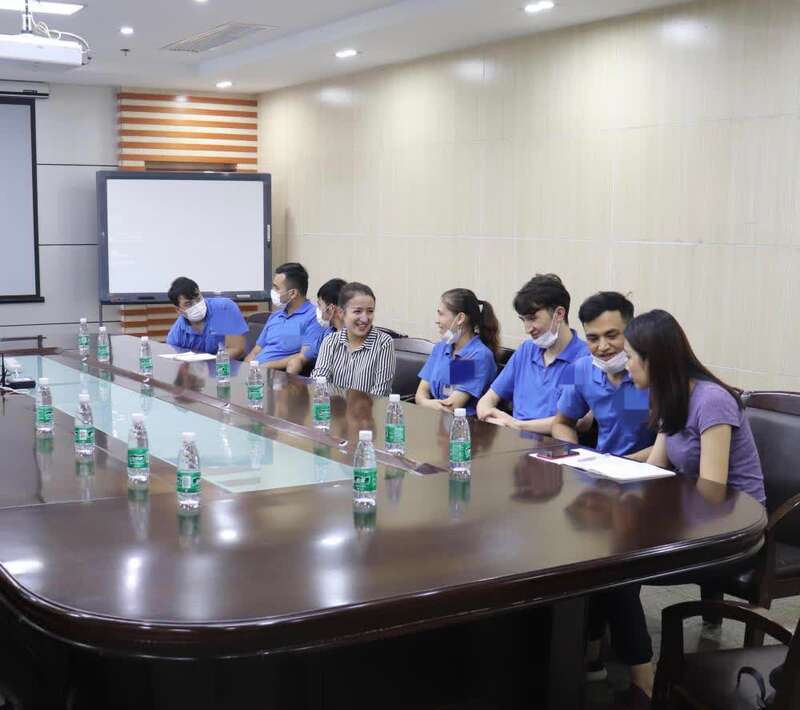 尼罗拜尔(左四)和陈宁(右一)与新疆少数民族工人进行焦点小组访谈。