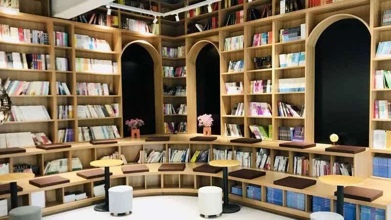 推开书店大门,眼前是一个兼具艺术感与功能性的区域,类似阶梯的座位、满是书的通顶大书架、多组巨幅涂鸦黑板画,给读者提供了舒适“柔软”的阅读环境。据悉,书店的空间设计灵感,源于中国古典园林廊道的造景手法,在建筑的室内外之间穿插一个具有仪式感的门廊来达到步移景异的效果。而书店的设计师,就是东华大学环境设计系教师黄更。