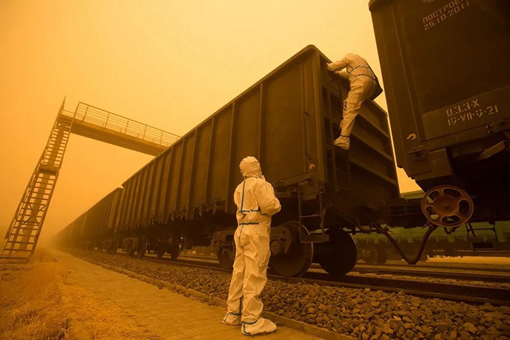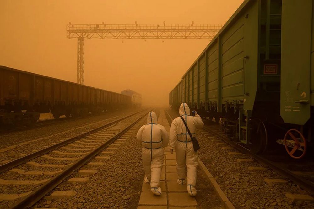 3月27日,受境外气旋影响,内蒙古自治区二连浩特市遭遇沙尘暴天气,给口岸通关带来一定影响。