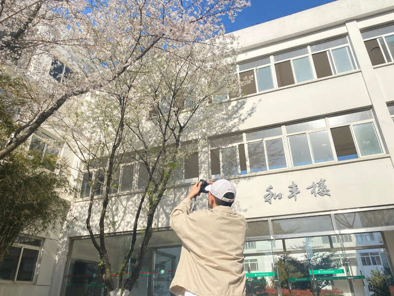 最为人熟知的赏花地点是该校和丰楼3303教室。教室窗外就是几株硕大的樱花树。春光烂漫,透过窗户,中青报·中青网记者就可以清楚地看到樱花的花枝随风摇曳。这间教室也被师生们称为“樱花教室”。