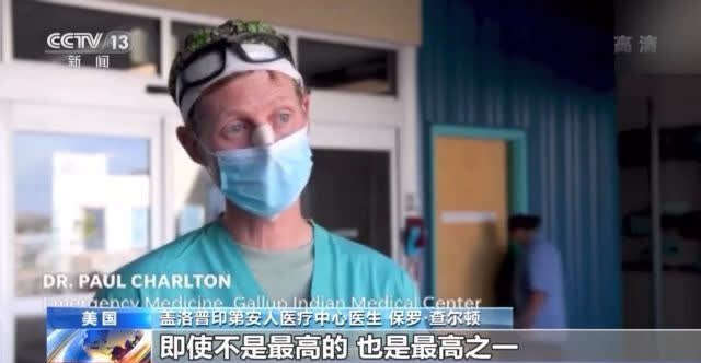 盖洛普印第安人医疗中心医生 保罗·查尔顿:在全美这个地区(纳瓦霍印第安人保留区)的新冠病毒人均感染率和人均死亡率,即使不是最高的,也是最高之一。由于地势偏远,住在这里的人们难以获得医疗资源,能顺利来到盖洛普印第安人医疗中心的病人,当然能受到较高水平的治疗,但是多数情况下,病人根本没有办法过来。这意味着很多时候病人无法及时获得治疗,有时患者在家将就了很久,才最终下决心跋山涉水来到这里,然而已经太晚了。