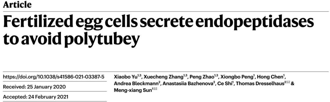 3月31日,Nature(《自然》)在线发表武汉大学生命科学学院孙蒙祥教授课题组的最新研究成果,阐释了植物防止多精入卵的新机制,揭示了一个人们长期不了解的植物受精奥秘。
