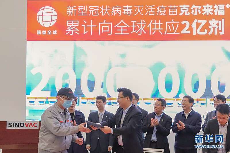 当日,北京科兴中维生物技术有限公司宣布其生产的新冠疫苗克尔来福全球累计发货量达2亿剂。