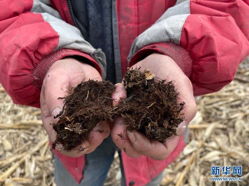 3月28日,黑龙江省五常市沙河子镇福太村村民向记者展示被盗挖的黑土。新华社记者 杨思琪 摄