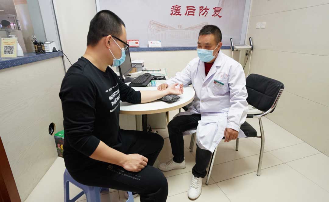 陈建彬(右)在福建中医药大学附属第三人民医院出门诊