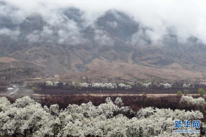 这是4月3日在中卫市南长滩村拍摄的梨花(无人机照片)。