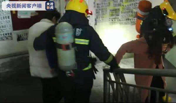 13时35分,救援力量到达现场后看到,现场浓烟滚滚,整栋楼的走廊、楼梯都是烟雾,着火楼层为4楼。经询问,现场目击者称楼上还有居民被困,于是,消防员立即上楼疏散被困人员,其他的消防员立即出水对火势进行控制。