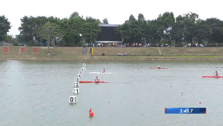 上午的半决赛,广东选手郑鹏飞划出3分46秒297;来自云南的刘浩也划出个人最好成绩3分48秒740。下午的决赛堪称一场巅峰对决,刘浩、王浩、邢松、郑鹏飞是目前国内男子划艇最优秀的四位选手,争夺从起航那一刻就已开始。