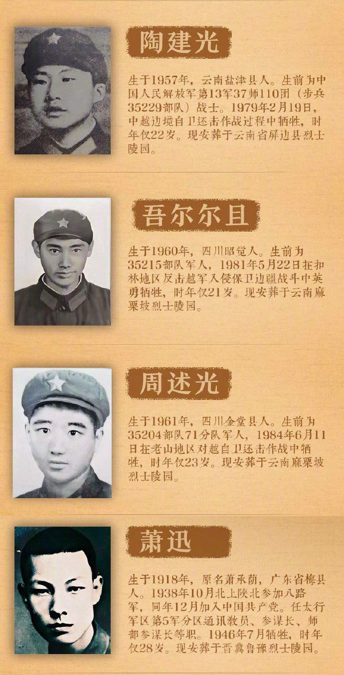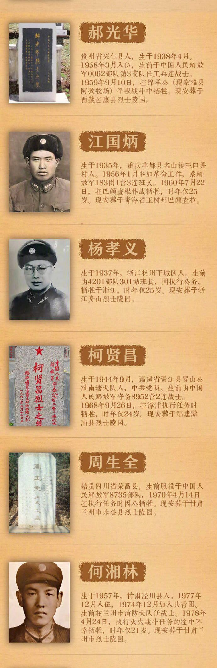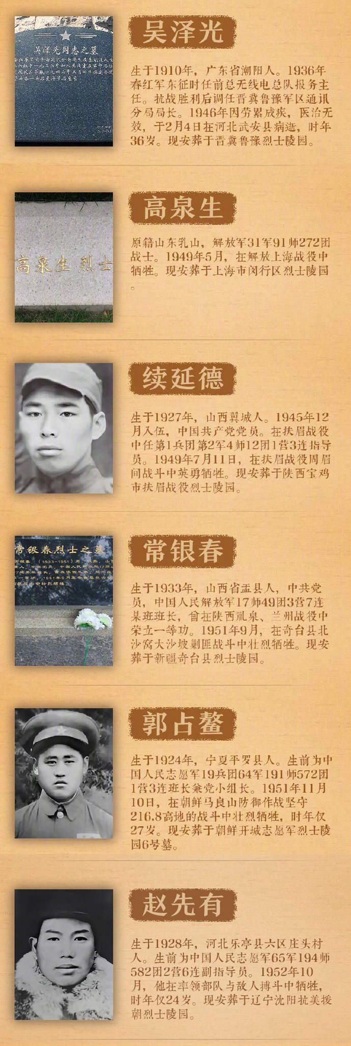 确认找到亲属的烈士包括:段楠烈士、汤士伦烈士、李寿山烈士、苏精诚烈士、韩影烈士、靳升云烈士、吴泽光烈士、高泉生烈士、续延德烈士、常银春烈士、郭占鳌烈士、赵先有烈士、郝光华烈士、江国炳烈士、杨孝义烈士、柯贤昌烈士、周生全烈士、何湘林烈士、陶建光烈士、吾尔尔且烈士、周述光烈士、萧迅烈士。