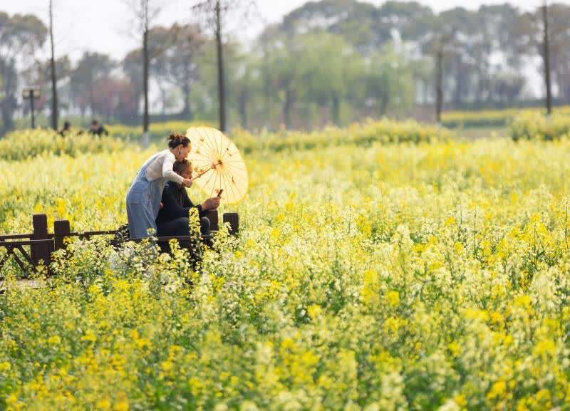 中国青年报客户端讯(左智越 中青报·中青网记者 李超)清明时节,位于太湖北岸的江苏苏州吴中区横泾街道的上林村游人如织,十分热闹。500余亩油菜花竞相开放。50余岁的宗大爷每年都会带着老伴来这里“打卡”。