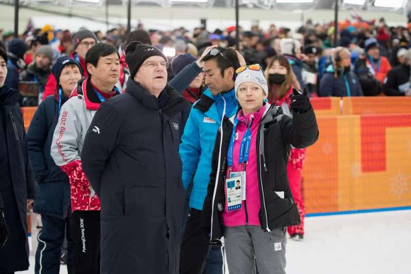 平昌冬奥会期间,刘易斯陪同国际奥委会主席巴赫考察比赛场地