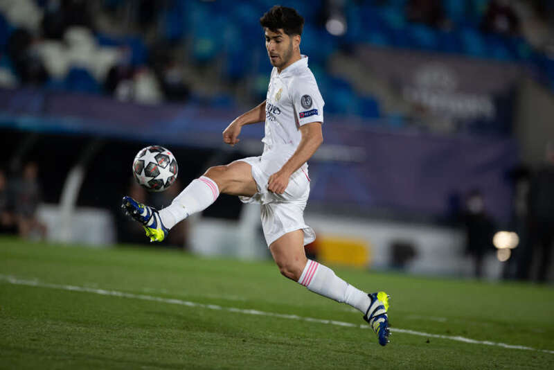 4月6日,皇家马德里队球员阿森西奥在比赛中破门得分。新华社记者孟鼎博摄