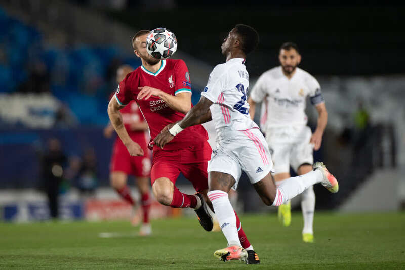 第27分钟,皇马率先破门,克罗斯后场送出长传,维尼修斯胸部停球后带球突至禁区边缘捅射入网。第36分钟,主队再入一球,克罗斯传至前场,阿诺德头球解围未果,阿森西奥拿球后将球挑过对方门将阿利松,轻松打空门得手。上半时,皇马便以2:0领先对手。