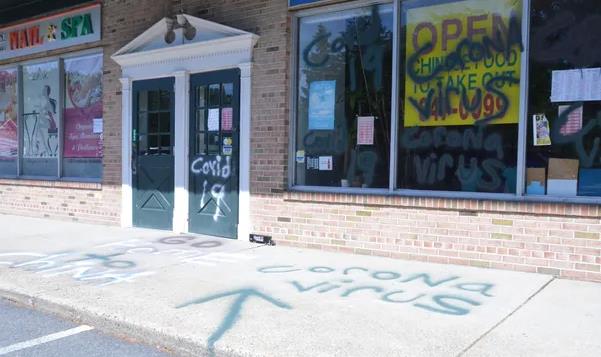 △2020年6月,新泽西州一家中餐馆门前被喷漆,包括“新冠病毒”“回家”字样