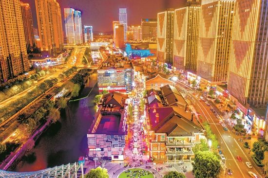 夏日,穿梭夜市,在月上柳梢时,与人相约。相约汉街大戏台,看灯光璀璨,相约杜莎夫人蜡像馆,融入如织人流。看开放市集张灯结彩,手机里直播带货,当人群纷纷“为武汉心跳”,城市的喧嚣倒映在楚河的碧波之上。