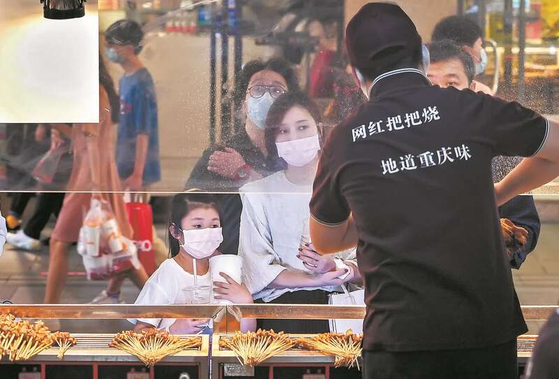 2020年5月1日,汉街上的烧烤店生意兴隆