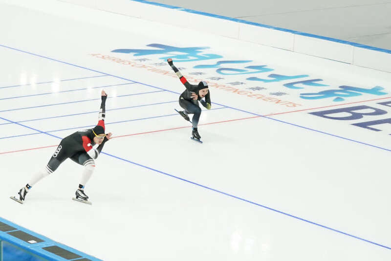 “相约北京”冰上测试活动速度滑冰比赛在国家速滑馆“冰丝带”举行。新华社记者彭子洋摄