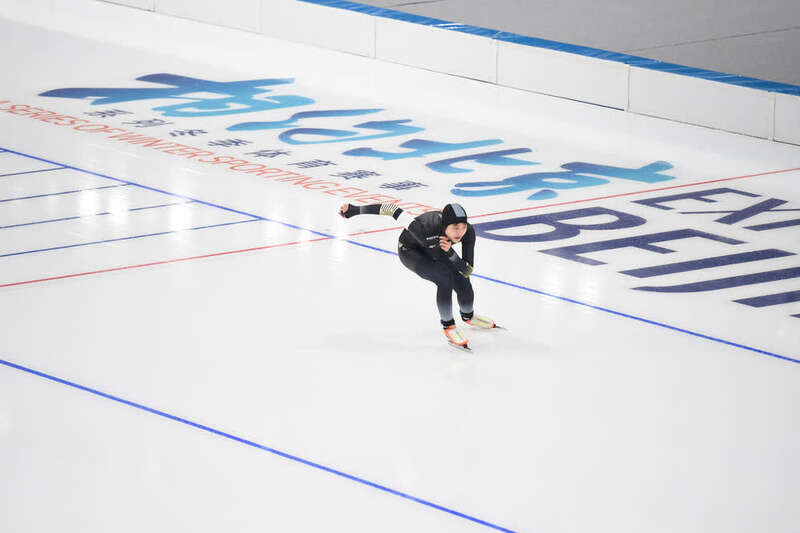 速度滑冰运动员在测试活动中。新华社记者彭子洋摄