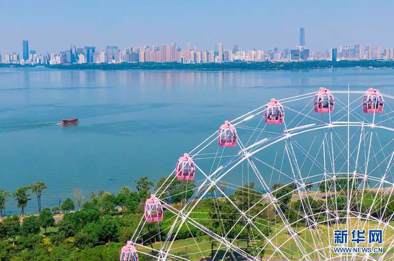 2020年8月17日拍摄的武汉“东湖之眼”摩天轮(无人机照片)。新华社记者 熊琦 摄