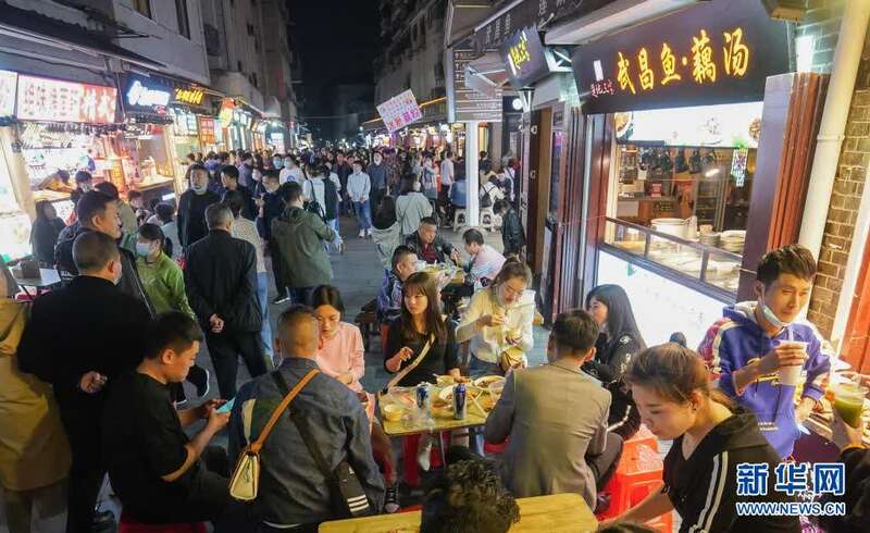 3月28日,人们在武汉市著名的小吃街户部巷休闲消费。新华社记者 程敏 摄