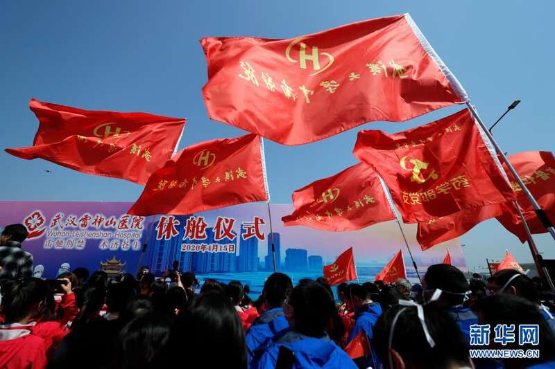 这是2020年4月15日拍摄的武汉雷神山医院休舱仪式。新华社记者 沈伯韩 摄