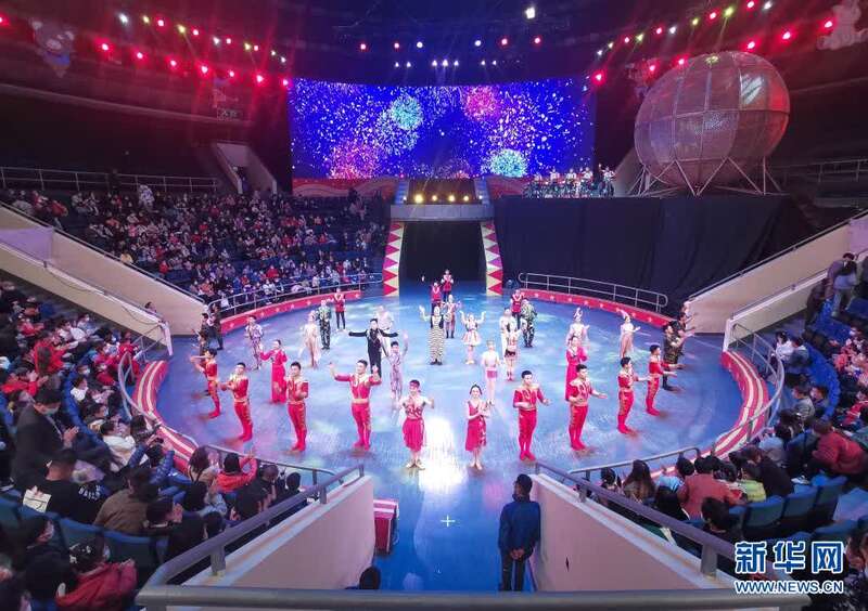 4月3日,武汉杂技厅的演员们在演出后向观众谢幕。新华社记者 肖艺九 摄