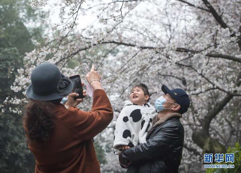 3月8日,游客在武汉大学樱花大道赏花。新华社记者 肖艺九 摄