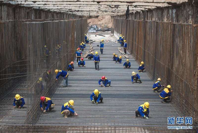 2020年4月30日,来自中铁七局的建设者在武汉武九北综合管廊工程施工现场作业。新华社记者 肖艺九 摄