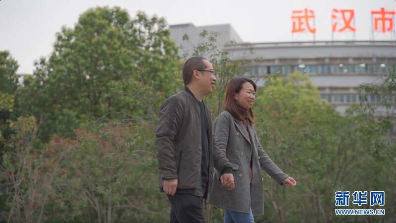 3月23日,武汉市金银潭医院的医护夫妻涂盛锦和曹珊在下班路上。新华社记者 熊琦 摄