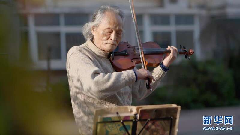 3月24日,“看夕阳的老人”王欣在东西湖区园艺花城小区内拉小提琴。新华社记者 熊琦 摄